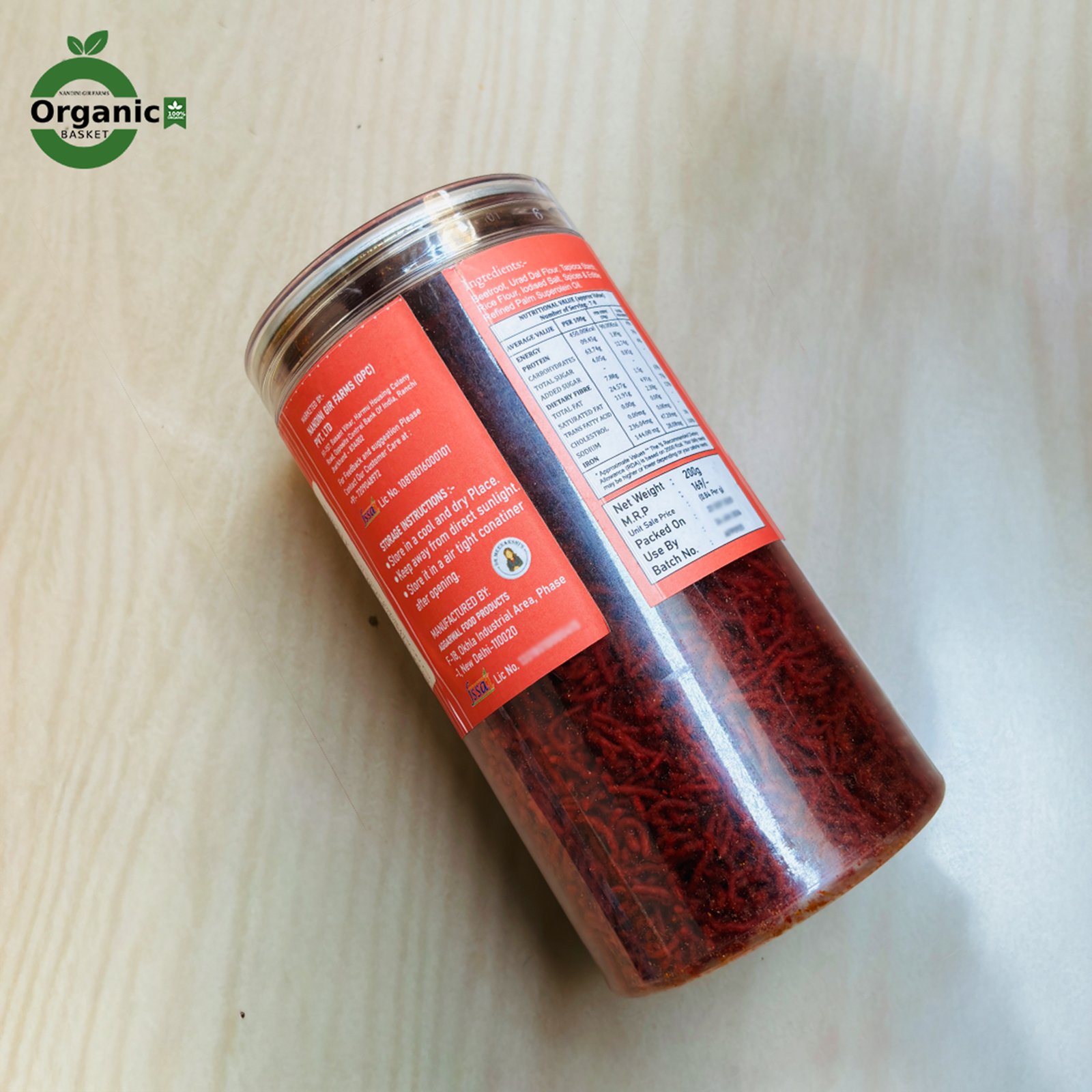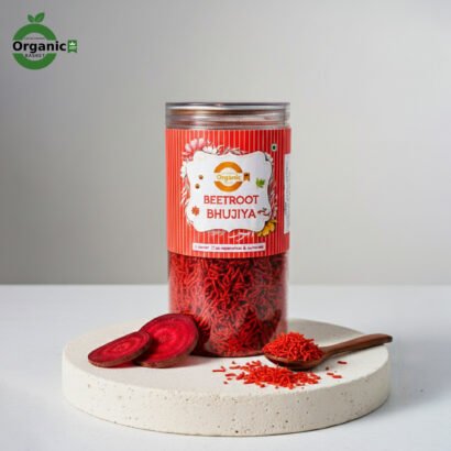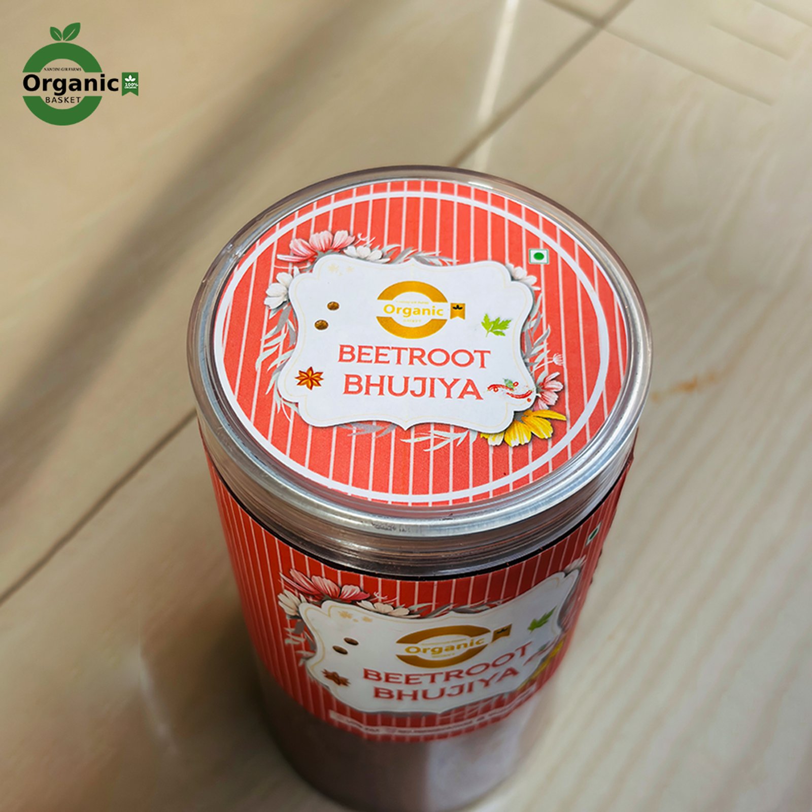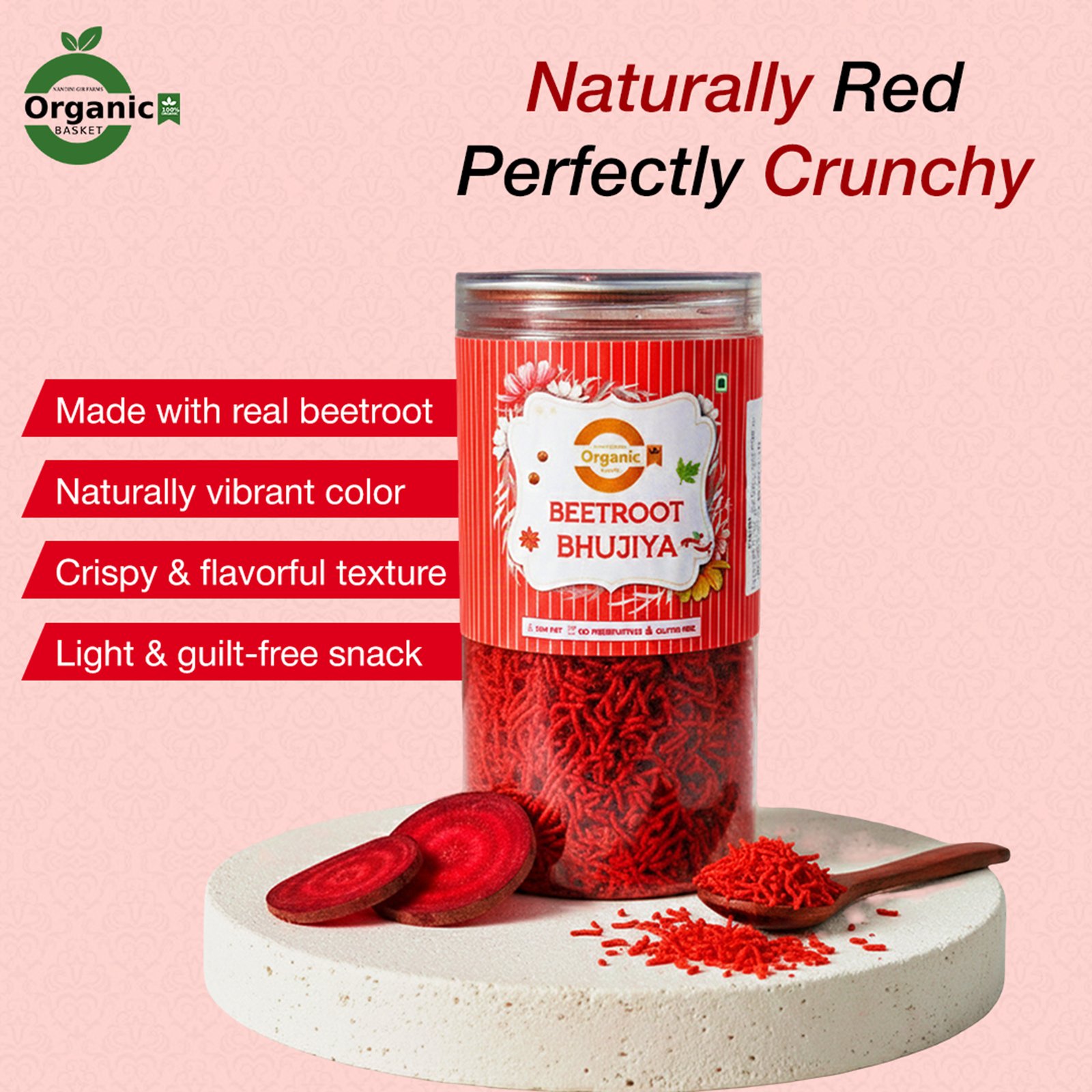 Add a vibrant twist to your snacking with Organic Basket Beetroot Bhujia—a crispy, flavorful bhujia made with real beetroot and carefully selected ingredients. This ready-to-eat savory snack combines traditional taste with modern nutrition, making it a healthier alternative to regular fried snacks.